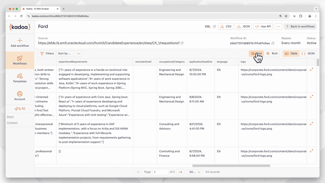 We've introduced pre-built workflow templates for popular website sources and industry use cases. You can try them with a single click.
